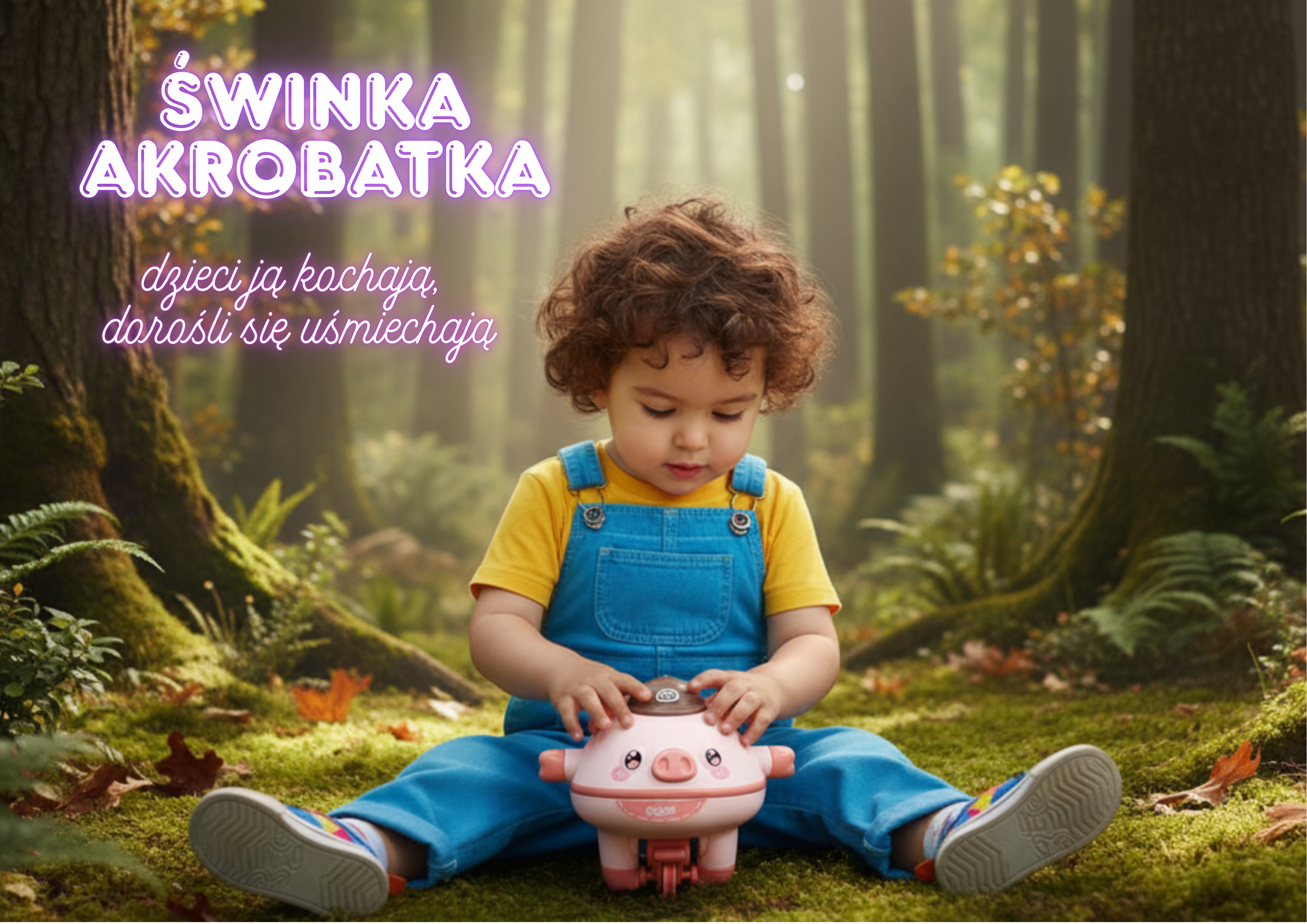 Świnka Akrobatka to zabawka, która od razu przyciąga uwagę. Jedzie na jednym kole, trzyma równowagę i potrafi poruszać się po dołączonej linie, jak mały cyrkowiec. Dzieciom daje efekt „wow”, a dorośli często sami próbują ją uruchomić, bo wygląda to tak, jakby przeczyła zasadom fizyki.
